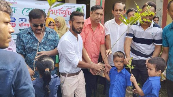 প্রবাসী ভি.আইপি ক্লাব প্রাথমিক বিদ্যালয়ের ছাত্র/ছাত্রীদের মধ্যে গাছের চারা উপহার দিয়েছে